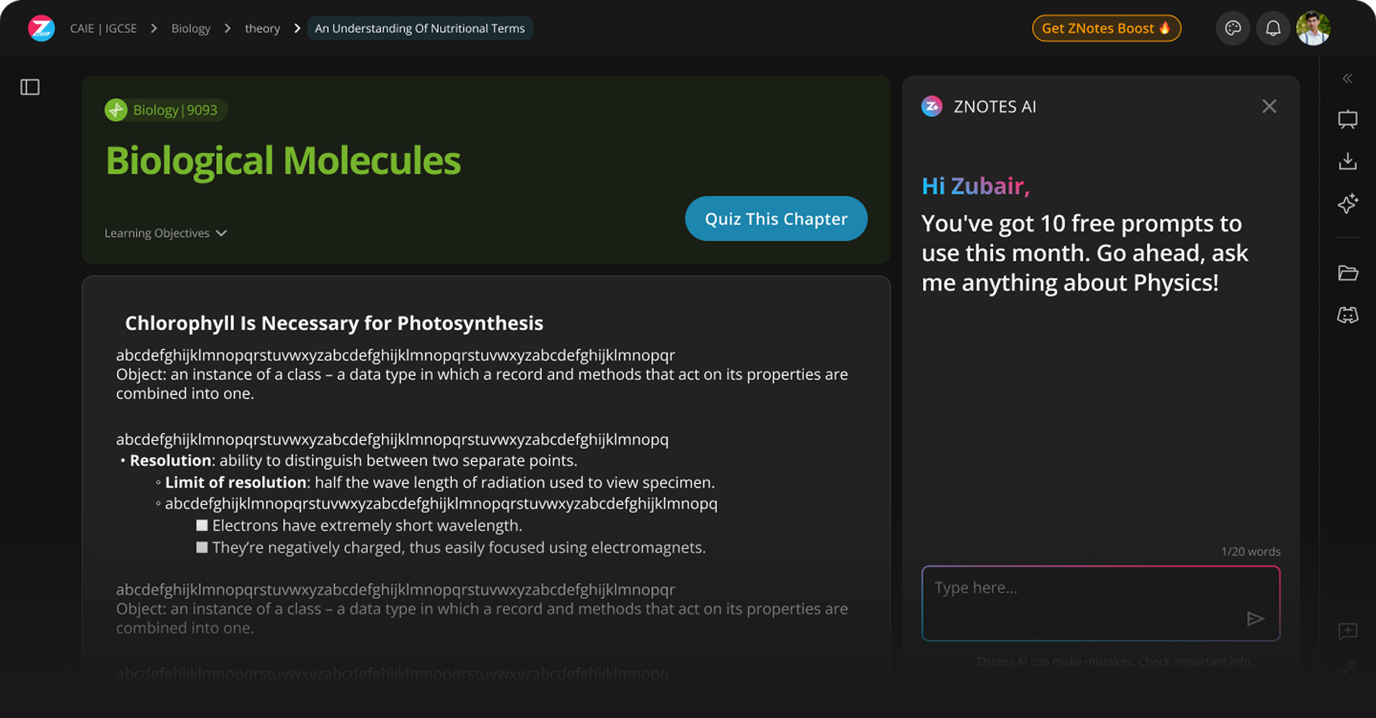 ZNotes has helped me pass numerous exams. Every day before an exam, I just brush through the ZNotes. I owe my IGCSE to ZNotes and the wonderful community behind it.